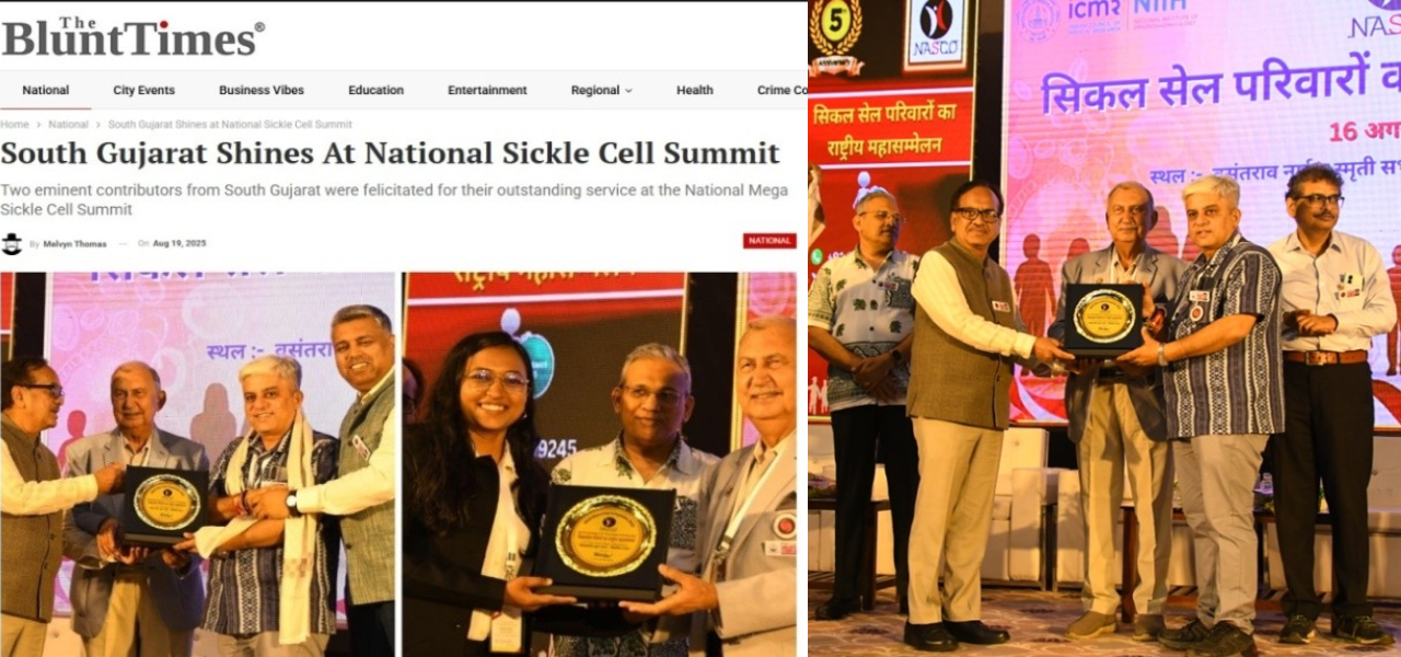 Mr. Bhavesh Raicha, Valsad Blood Donation Centre, was honored for his pioneering contribution to the development and implementation of the Sickle Cell Anemia Control Programme in Gujarat.